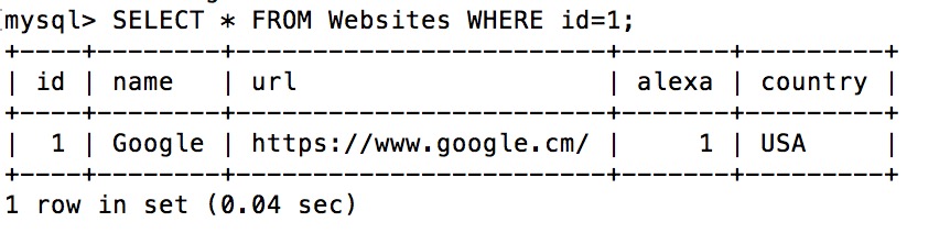 SELECT * FROM Websites WHERE id=1;